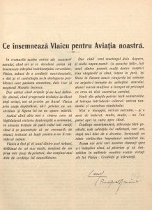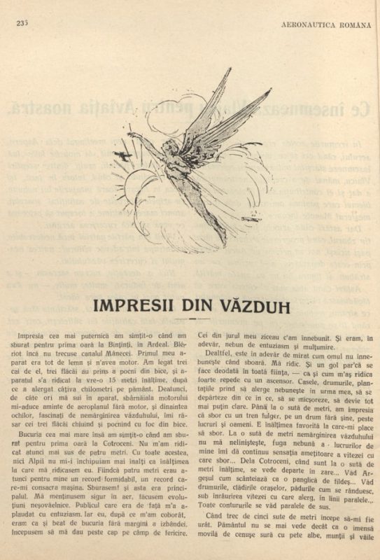 (Fragmente extrase din Aripa, Anul I, no. 1/1925 și Aeronautica Română, An II, no. 7-8-9, 1923, aflate în colecția Compartimentului Periodice al Bibliotecii Județene ASTRA Sibiu)