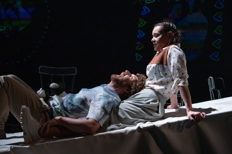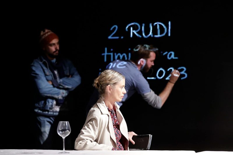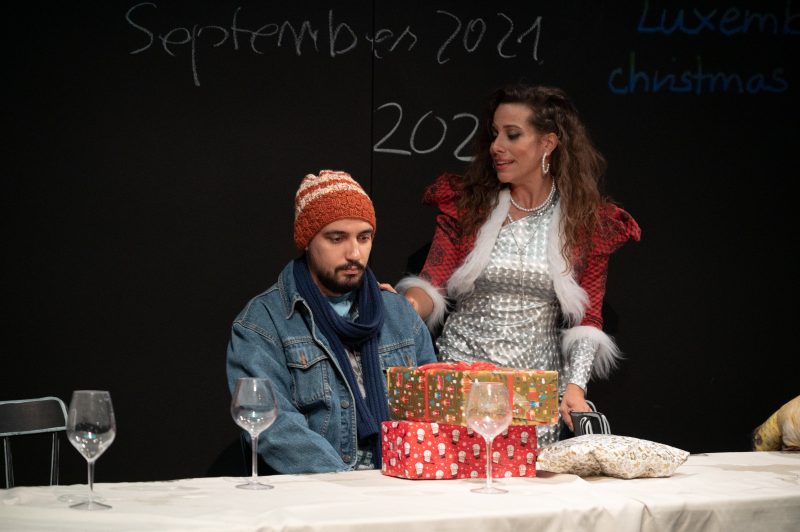 Personajele complexe sunt interpretate cu talent și expresivitate de o distribuție mixtă, care vorbește trei limbi: română, germană și engleză. Fiind un spectacol de text, prin intermediul dialogului traumele și suferințele ascunse se dezvăluie treptat, demascând aparențele. Darius este student la arhitectură, dar în realitate facultatea i-a fost aleasă de părinți, care mereu au pus presiune pe el să urmeze un drum care nu era al lui. În încercarea inconștientă de a se sustrage așteptărilor lor, el tinde să iasă din tipare, ocupându-se cu falsificarea de documente și având o relație cu o femeie mai în vârstă și căsătorită. Sophie are o situație materială bună și un soț pe care pretinde că îl iubește, dar în realitate îl înșală cu Darius.