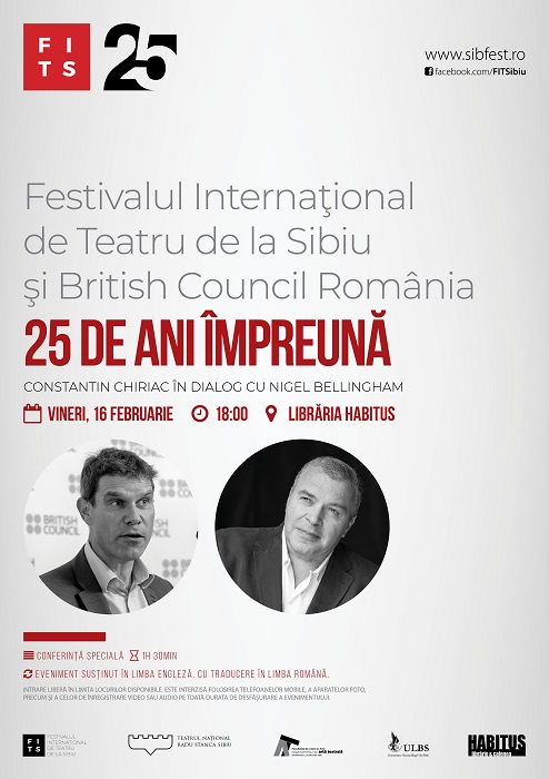 „British Council ocupă o poziție centrală în istoria Festivalului Internațional de Teatru de la Sibiu. Încă de la începutul festivalului, din 1993, directorul de atunci al British Council, Sir Claus Henning, s-a implicat în susținerea financiară și logistică a FITS și totodată a ajutat la dezvoltarea relațiilor cu marile festivaluri și personalități ale artei și culturii atât din Marea Britanie, cât și din lume. Grație British Council am reușit să participăm de câteva ori la Edinburgh International Festival, la întâlnirile profesionale de acolo și am reușit să fac primele proiecte europene, iar pe această cale, la aniversarea de 80 de ani de existență a British Council și 25 de ani ai FITS, vreau să le mulțumesc. Am continuat linia de prietenie cu toți directorii acestei instituții, care au recunoscut importanța Festivalului Internațional de Teatru de la Sibiu, iar acum, iată că vom susține un dialog cu Nigel Bellingham, actualul director al British Council România. Suntem bucuroși că putem să dezvoltăm în continuare acest parteneriat și sunt convins că legăturile culturale cu Marea Britanie ne vor fi sursă de inspirație și de dialog pe viitor”, a declarat Constantin Chiriac.